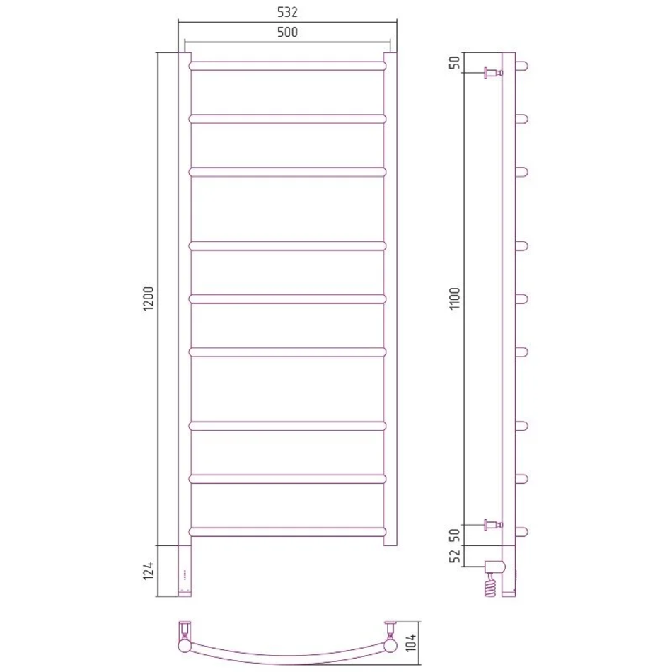 Полотенцесушитель электрический Сунержа Галант 3.0, высота 120 см, ширина 50 см, диммер слева/справа, цвет хром, 00-5800-1250/00-5801-1250