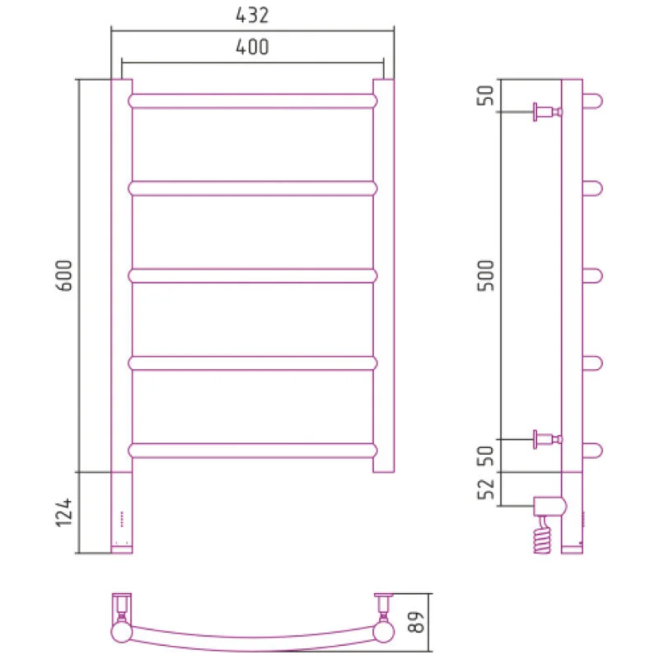 Полотенцесушитель электрический Сунержа Галант 3.0, высота 60 см, ширина 40 см, диммер слева/справа, цвет золото, 03-5800-6040/03-5801-6040