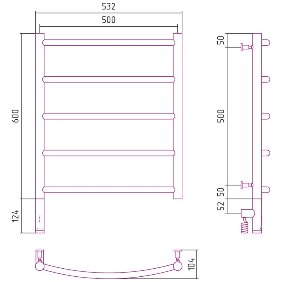 Полотенцесушитель электрический Сунержа Галант 3.0, высота 60 см, ширина 50 см, диммер слева/справа, цвет шампань, 020-5800-6050/020-5801-6050
