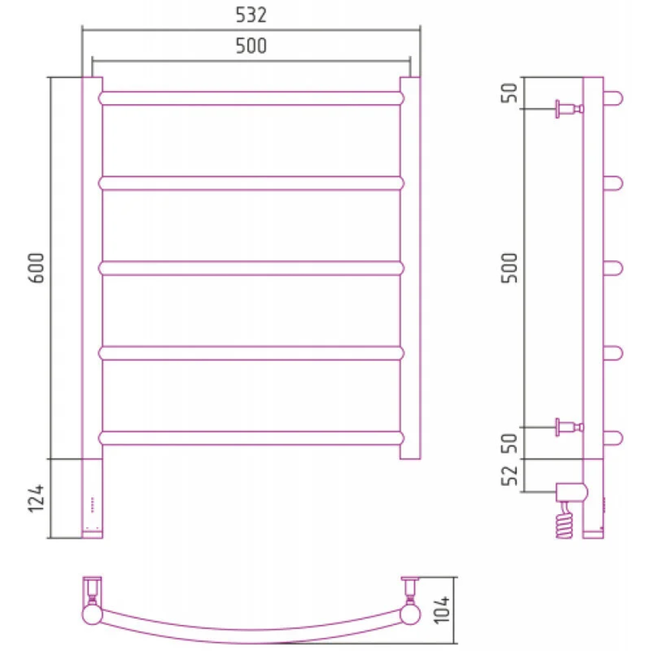 Полотенцесушитель электрический Сунержа Галант 3.0, высота 60 см, ширина 50 см, диммер слева/справа, цвет состаренная латунь, 051-5800-6050/051-5801-6050