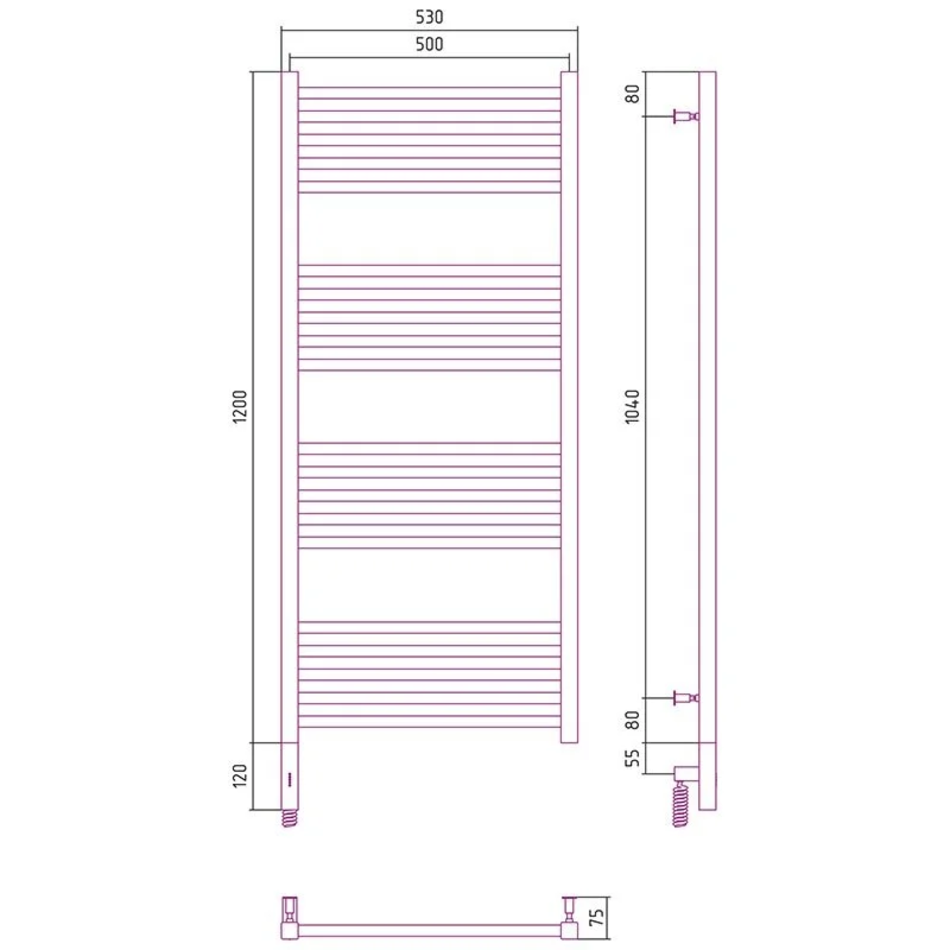 Полотенцесушитель электрический Сунержа Модус 3.0 1200 x 500, ширина 50 см, высота 120 см, МЭМ, левый/правый, темный титан муар