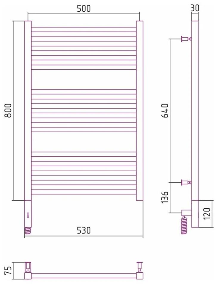 Полотенцесушитель электрический Сунержа Модус 3.0, 80 х 50 см, ширина 50 см, высота 80 см, с блоком управления МЭМ слева/справа, хром