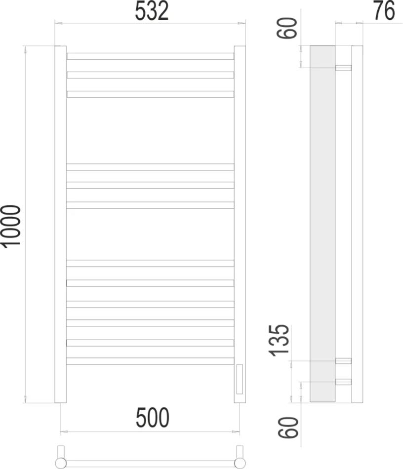 Полотенцесушитель электрический Terminus Аврора П12 500х1000, ширина 53.2 см, высота 100 см, 4670078527226