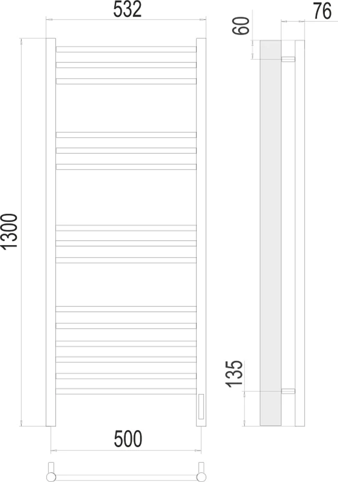 Полотенцесушитель электрический Terminus Аврора П15 500х1300 электро, 4670078527233, ширина 50 см, высота 130 см, диммер справа, цвет нержавеющая сталь