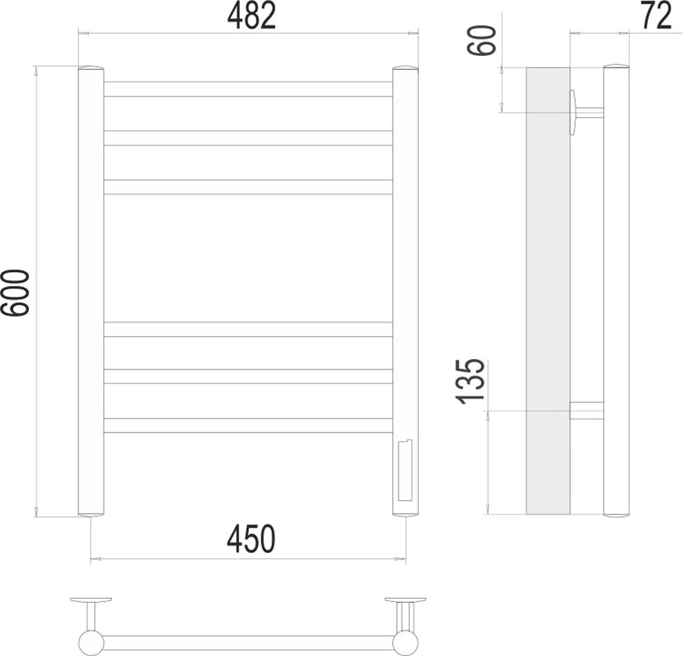 Полотенцесушитель электрический Terminus Аврора П6 450х600 электро КС 4670078527479, ширина 45 см, высота 60 см, диммер справа, черный матовый