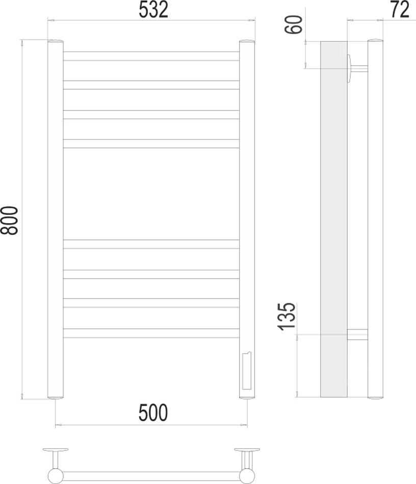 Полотенцесушитель электрический Terminus Аврора П8 500х800 электро 4670078527486, ширина 50 см, высота 80 см, диммер справа, белый матовый