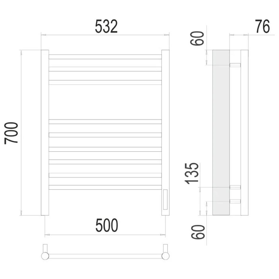 Полотенцесушитель электрический Terminus Аврора П9 500х700, ширина 53.2 см, высота 70 см, 4670078527240
