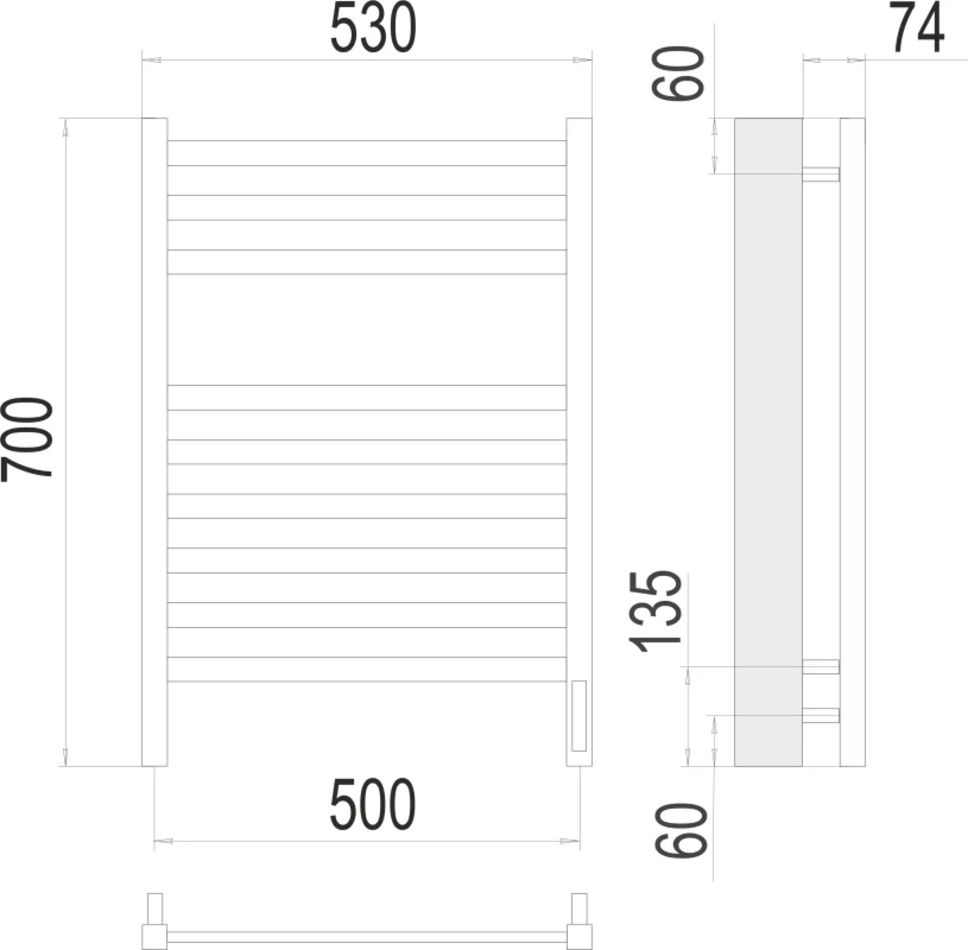 Полотенцесушитель электрический Terminus Енисей П9 530х700, ширина 53 см, высота 70 см, 4670078526281