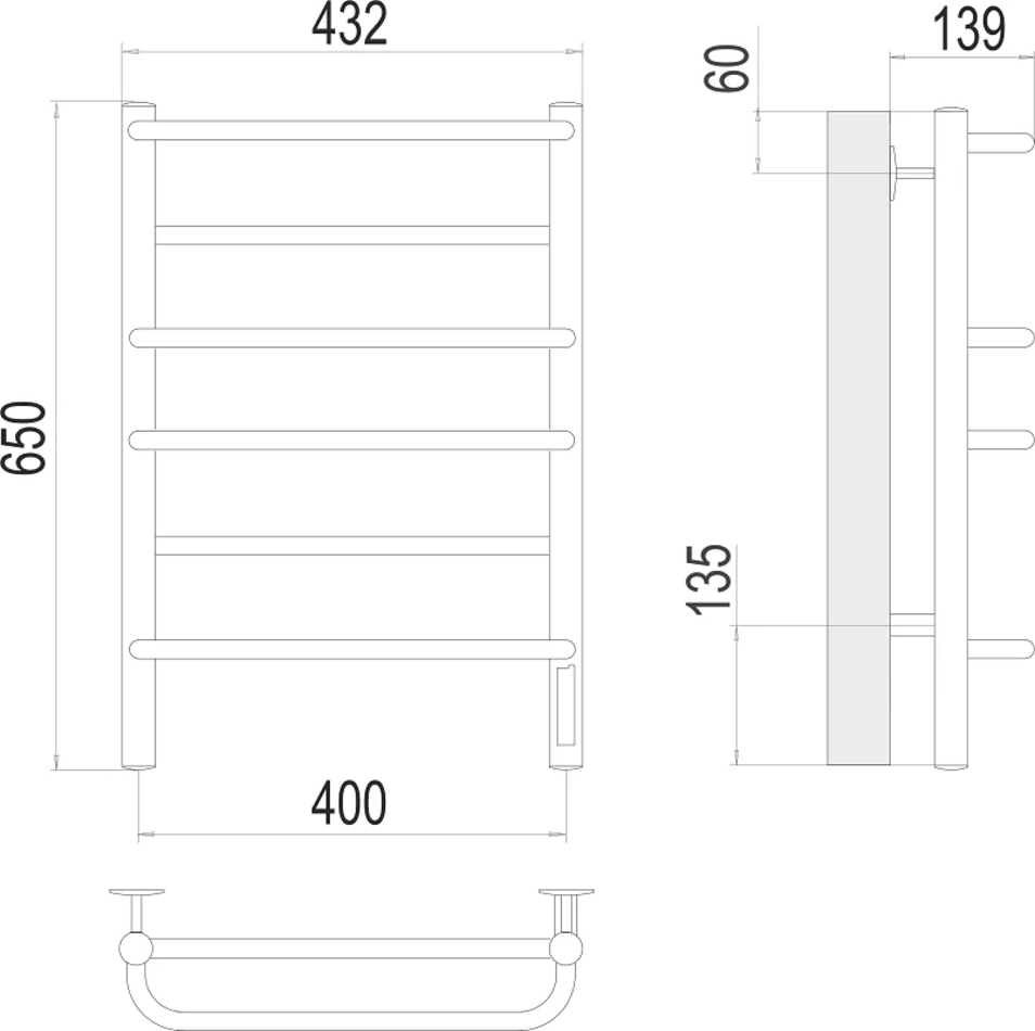 Полотенцесушитель электрический Terminus Евромикс П6 400х650 электро, 4670078531261, ширина 43 см, высота 65 см, диммер справа, цвет нержавеющая сталь