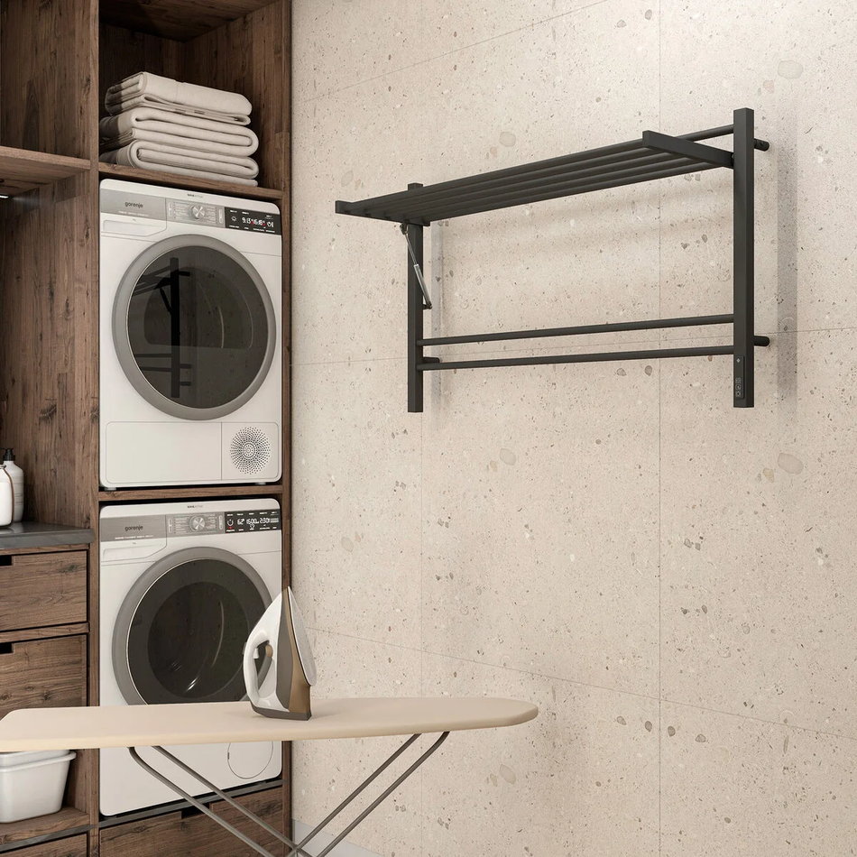 Полотенцесушитель электрический Terminus Горизонт П8 1000х600 электро КС, 4670078543325, ширина 100 см, высота 60 см, диммер справа, с полкой, черный муар