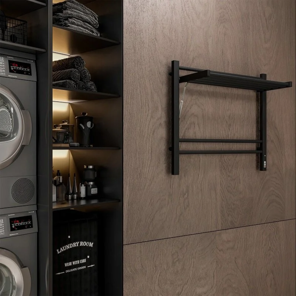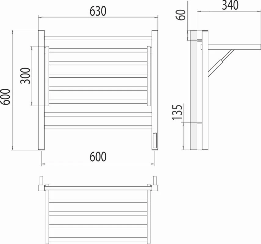 Полотенцесушитель электрический Terminus Горизонт П8 600х600 электро КС, 4670078543523, ширина 60 см, высота 60 см, диммер справа, с полкой, черный муар
