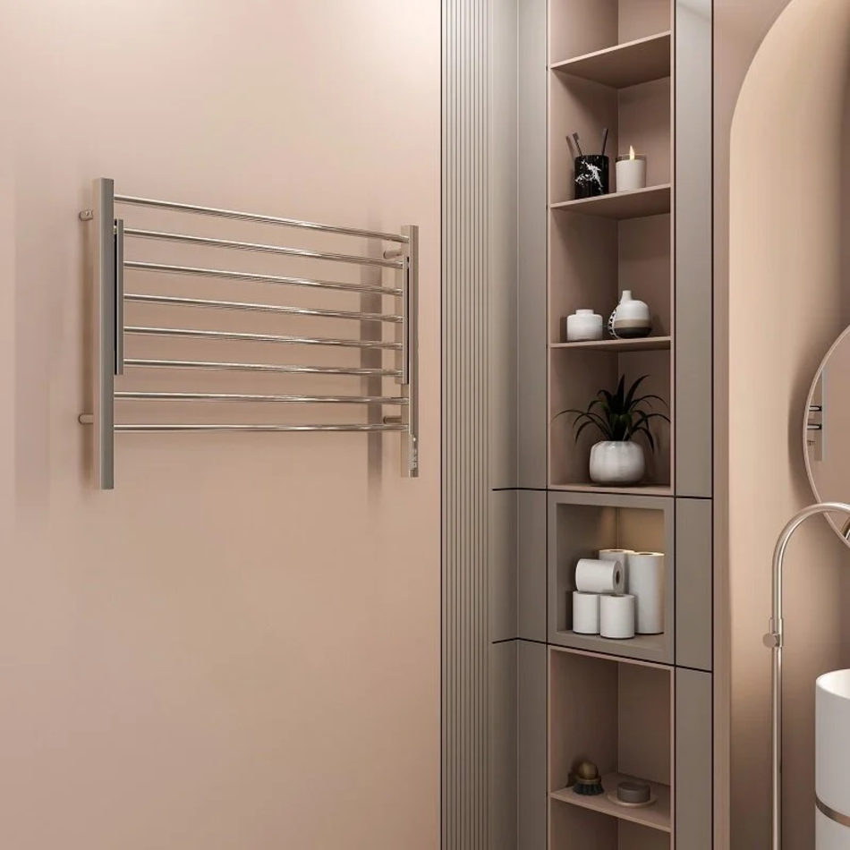 Полотенцесушитель электрический Terminus Горизонт П8 800х600 электро, 4670078543530, ширина 80 см, высота 60 см, диммер справа, с полкой, цвет нержавеющая сталь