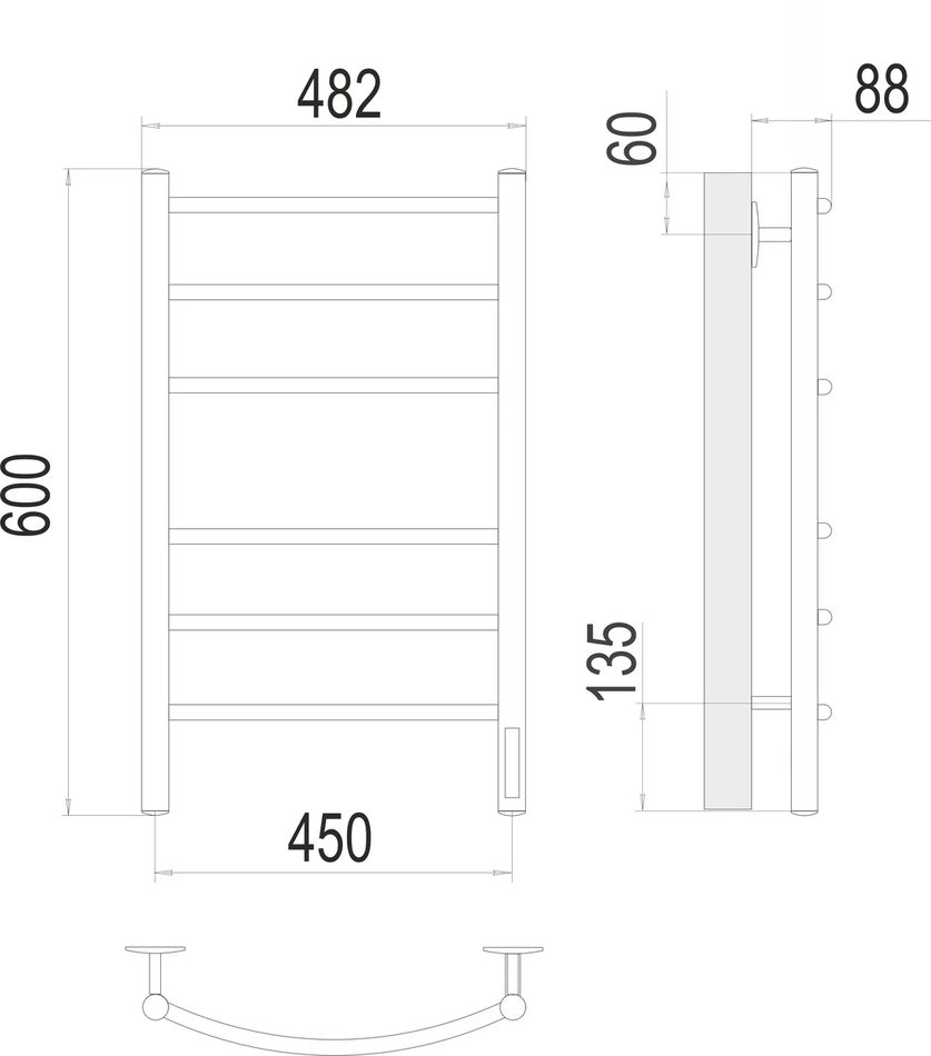 Полотенцесушитель электрический Terminus Классик П6 450х600, ширина 48.2 м, высота 60 см, белый RAL 9003 матовый, 4670078527561