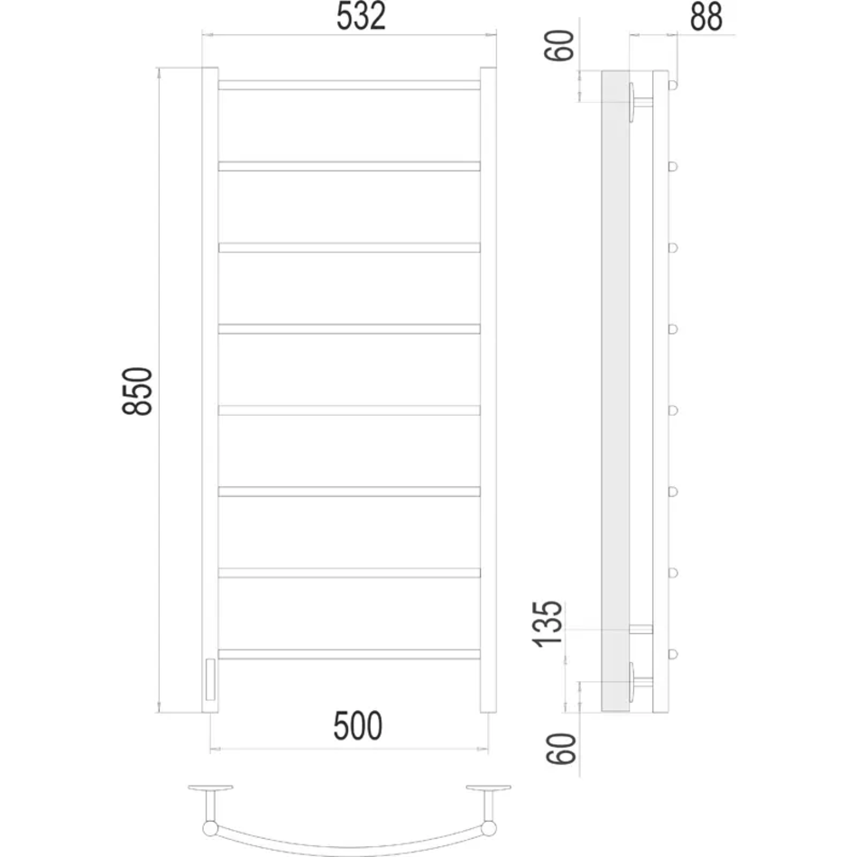 Полотенцесушитель электрический Terminus Классик П8 4670078531377, ширина 53.2 см, высота 85 см, диммер слева, нержавеющая сталь