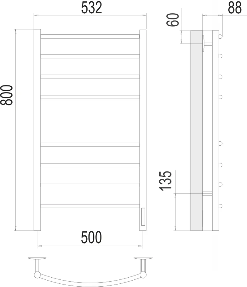 Полотенцесушитель электрический Terminus Классик П8 500х800 электро КС 4670078542991, ширина 50 см, высота 80 см, диммер справа, черный муар