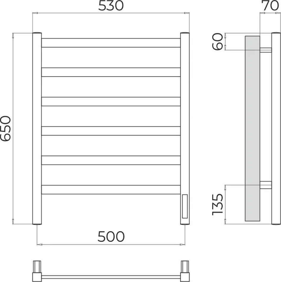Полотенцесушитель электрический Terminus Ното П6 500х650 электро 4670078544520, ширина 50 см, высота 65 см, диммер справа, нержавеющая сталь