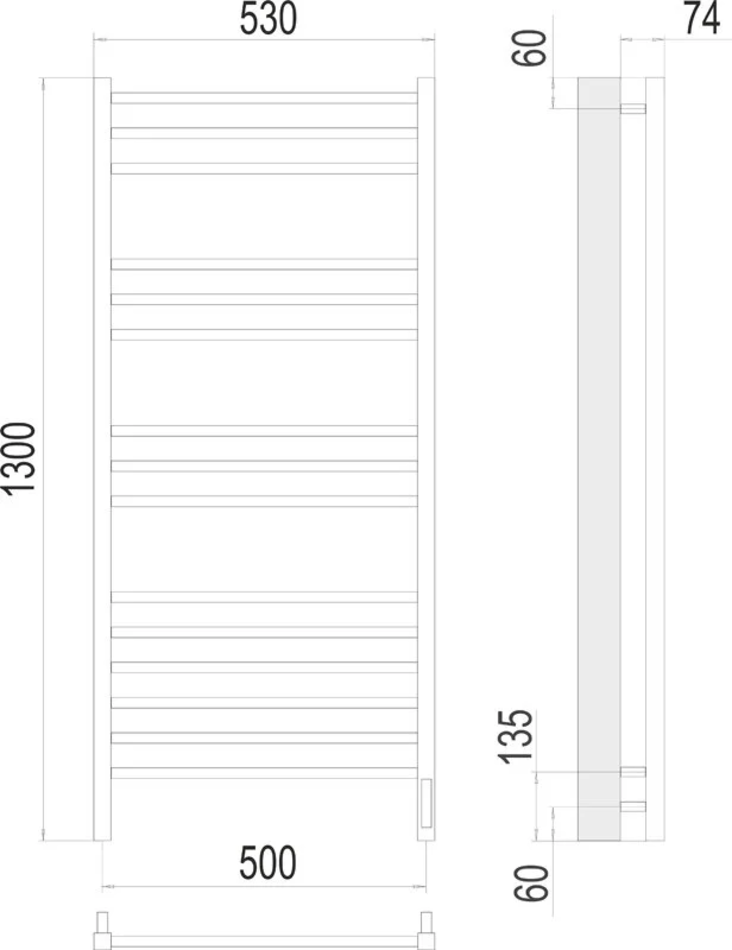 Полотенцесушитель электрический Terminus Сицилия П15 550х1300, ширина 53 см, высота 130 см, 4670078526304