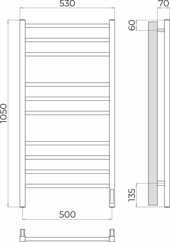 Полотенцесушитель электрический Terminus Ватикан П10 500х1050 электро 4670078544407, ширина 50 см, высота 105 см, диммер справа, нержавеющая сталь