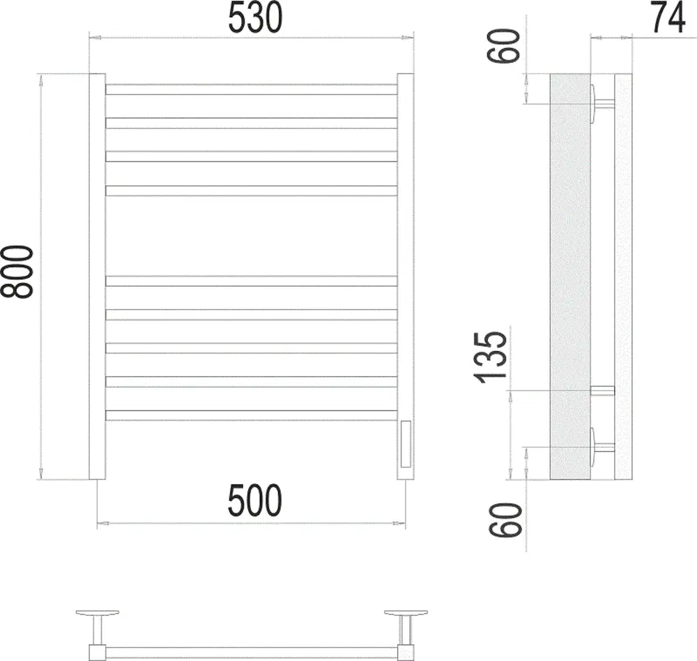 Полотенцесушитель электрический Terminus Ватикан П8 4670078627554, ширина 53 см, высота 80 см, диммер справа, черный матовый