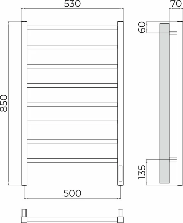Полотенцесушитель электрический Terminus Ватикан П8 500х850 электро, ширина 53 см, высота 85 см, диммер справа