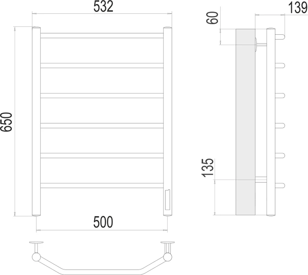 Полотенцесушитель электрический Terminus Виктория П6 500х650 электро, 4670078531193, ширина 50 см, высота 65 см, диммер справа, цвет нержавеющая сталь