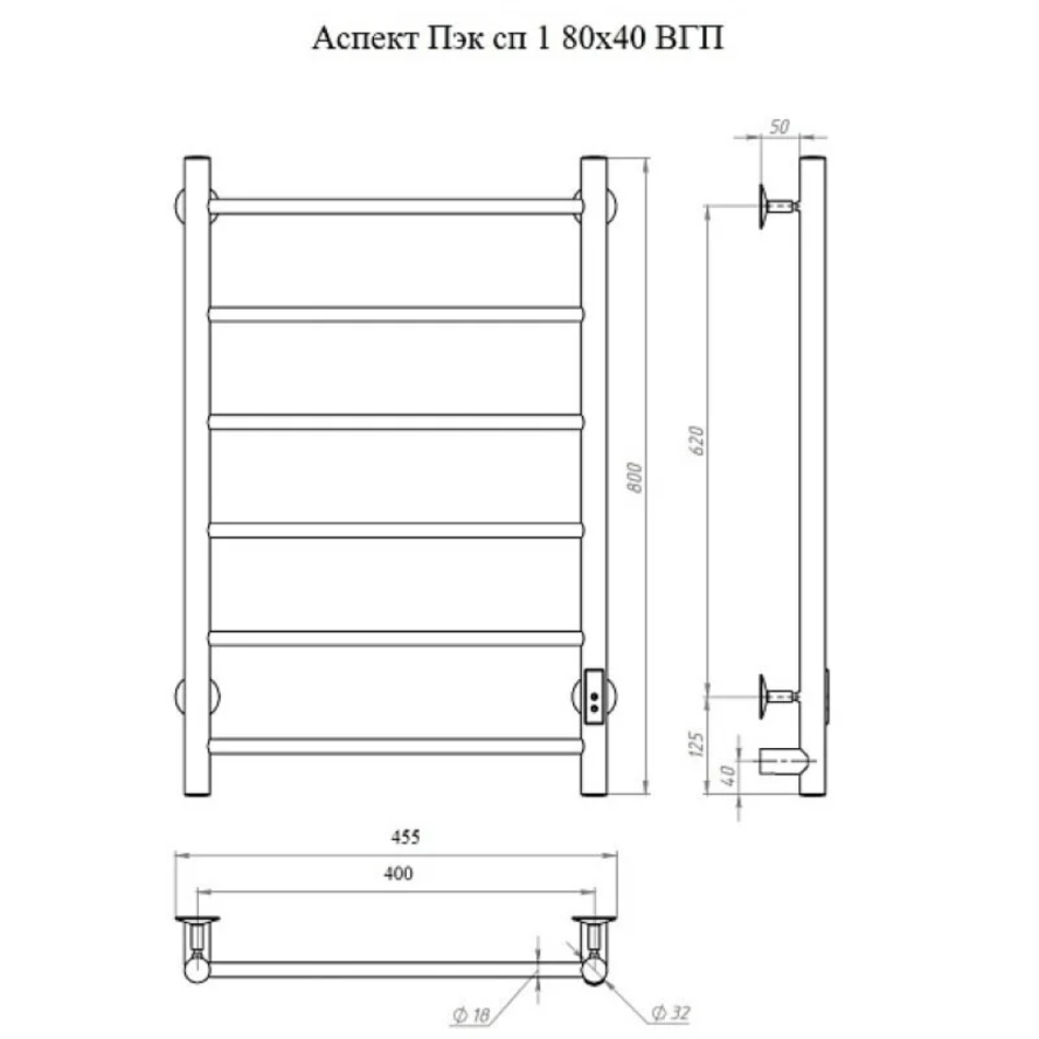 - Полотенцесушитель Аспект Пэк сп 1 80х40 графит ВГП
