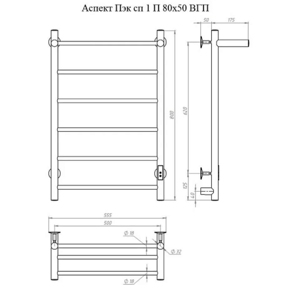 - Полотенцесушитель Аспект Пэк сп 1 80х50 графит ВГП