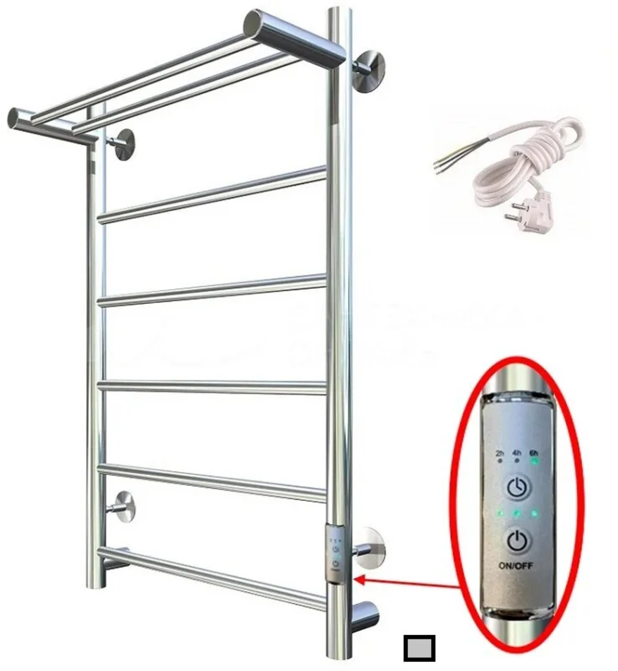 - Дополнительная информация: выключатель с таймером на 2, 4 и 6 часов работы и терморегулятором встроен в коллектор полотенцесушителя