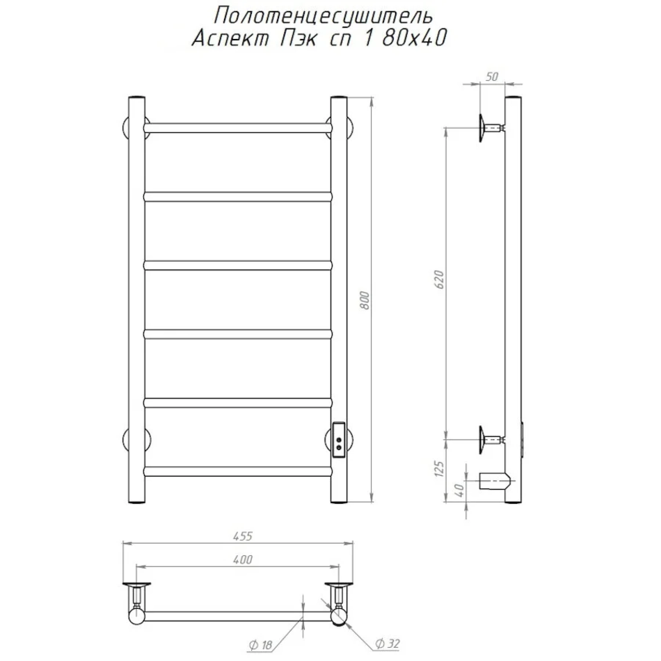 Полотенцесушитель электрический Тругор Аспект Пэк сп серия 1, АспектПэксп1/8040чернВГП, ширина 40 см, высота 80 см, диммер справа, черный