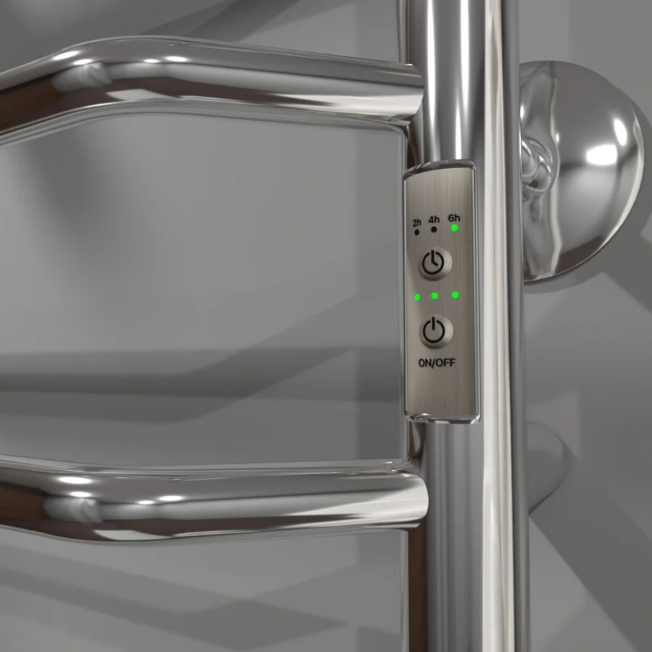 Панель управления электрическим полотенцесушителем с греющим кабелем позволяет выставлять температурный режим и ограничивать время работы при помощи таймера.