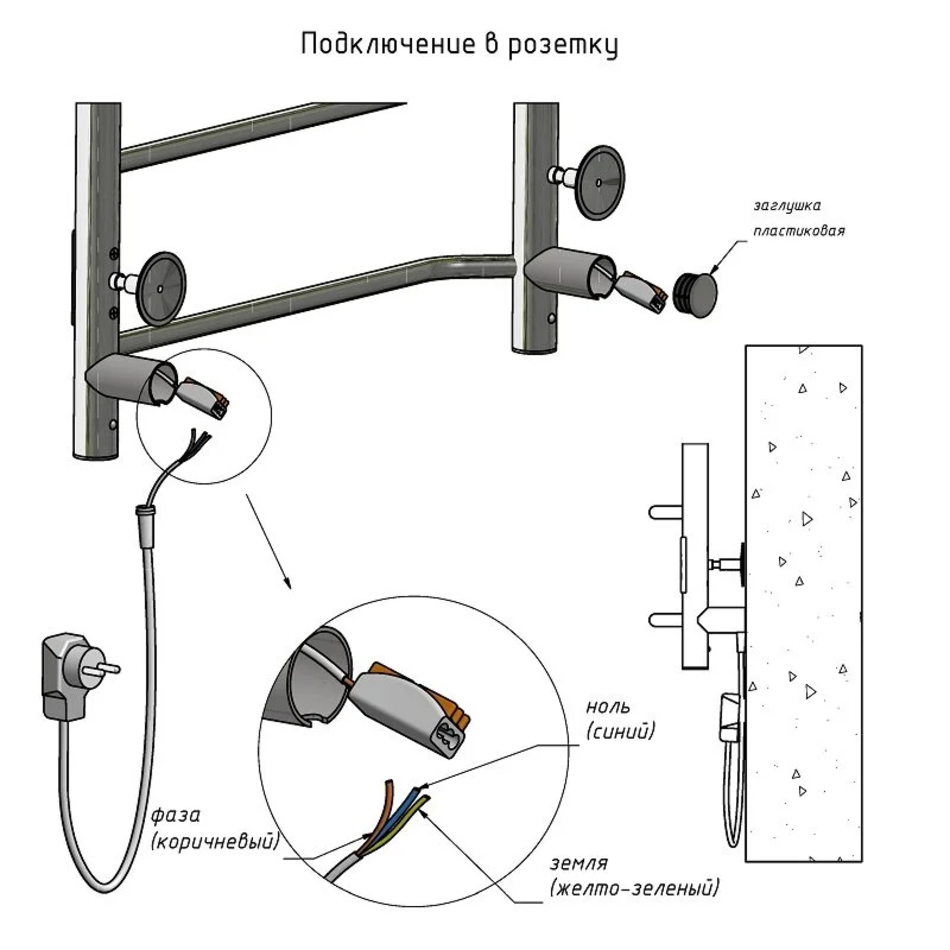 - Полотенцесушитель сухого типа с нагревательным кабелем