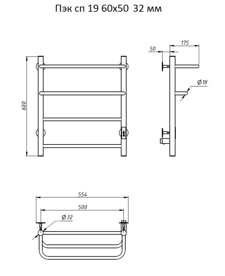 Полотенцесушитель электрический Тругор Пэк сп 19 60 x 50, ширина 50 см, высота 60 см, хром