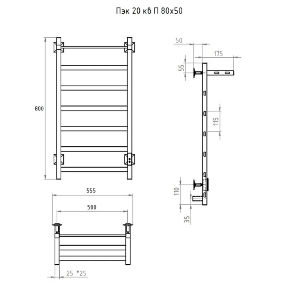 - Полотенцесушитель Пэк сп 20 кв П 80х50 графит ВГП.