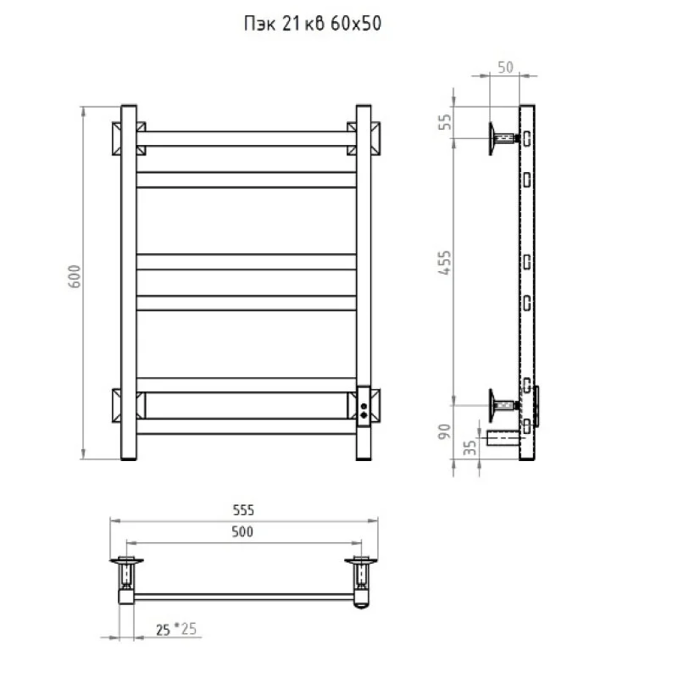 - Полотенцесушитель Пэк сп 21 кв 60х50 графит ВГП.