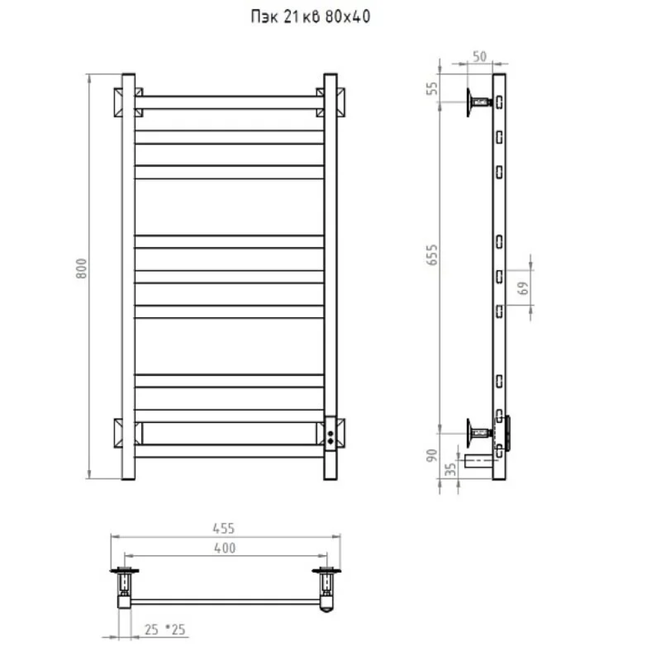 - Полотенцесушитель Пэк сп 21 кв 80х40 графит ВГП.