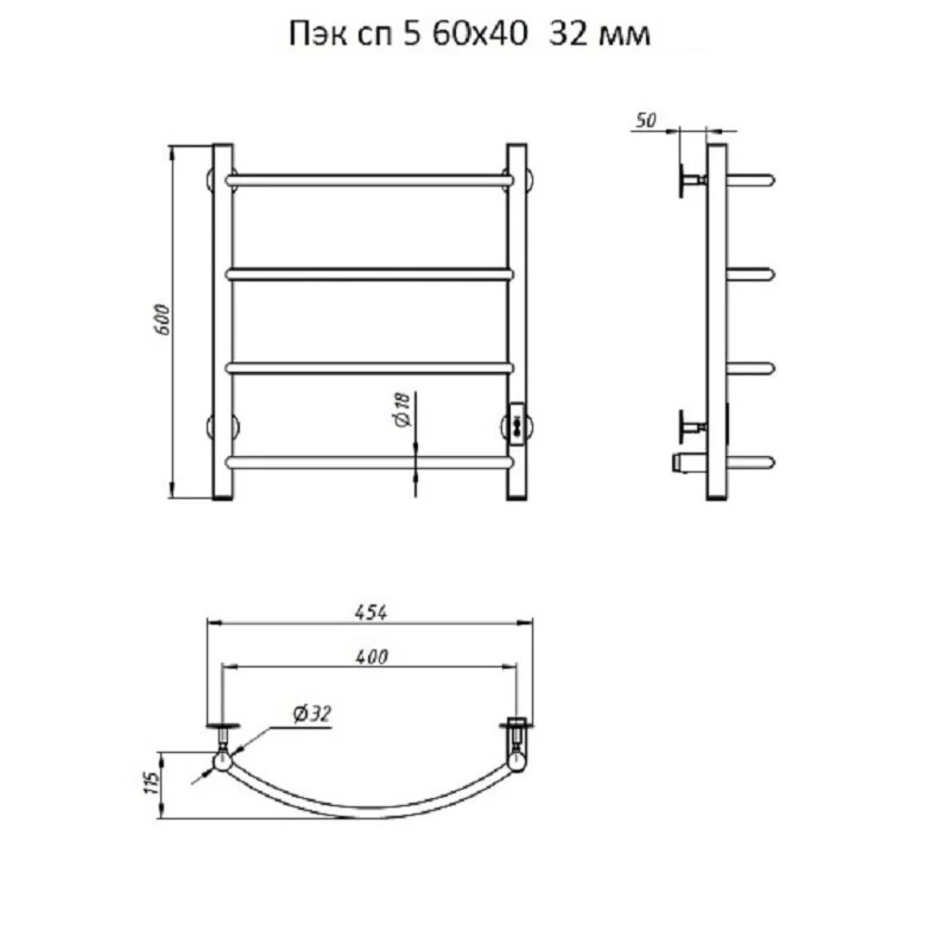 Полотенцесушитель электрический Тругор Пэк сп 5 60 х 40 белый ВГП, ширина 40 см, высота 60 см, Пэксп5/6040белыйВГП, диммер справа, цвет белый