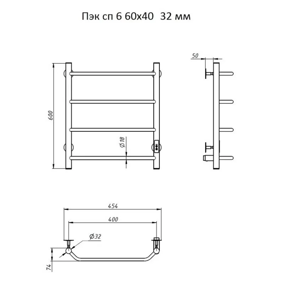 Полотенцесушитель электрический Тругор Пэк сп 6 60 х 40 черный ВГП, ширина 40 см, высота 60 см, Пэксп6/6040черныйВГП, диммер справа, цвет черный