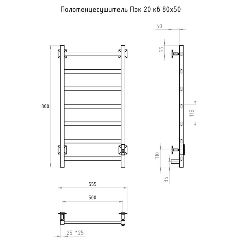 Полотенцесушитель электрический Тругор Пэк сп серия 20 кв, Пэксп20кв/8050черныйВГП, ширина 50 см, высота 80 см, диммер справа, черный