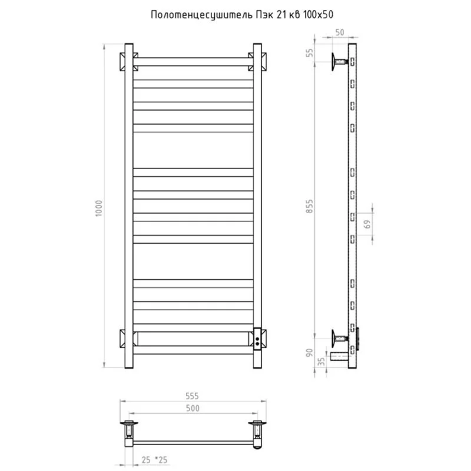 Полотенцесушитель электрический Тругор Пэк сп серия 21 100х50, ширина 50 см, высота 100 см, диммер справа, белый