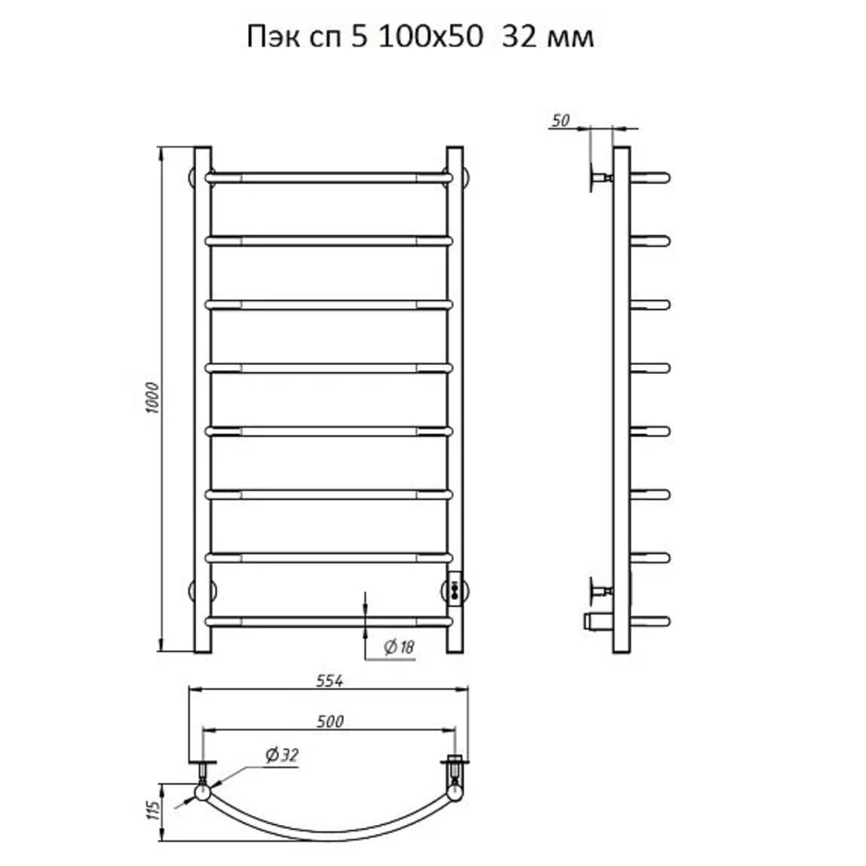 Полотенцесушитель электрический Тругор Пэк сп серия 5, Пэксп5/10050белыйВГП, ширина 50 см, высота 100 см, диммер справа, белый