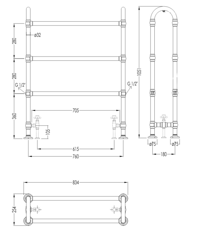 Полотенцесушители/радиаторы компании Devon&Devon выполнены из сантехнической латуни, что предусматривает собой возможность установки изделий на систему горячего водоснабжения, исключая негативного воздействия кислорода, находящегося в теплоносителе.