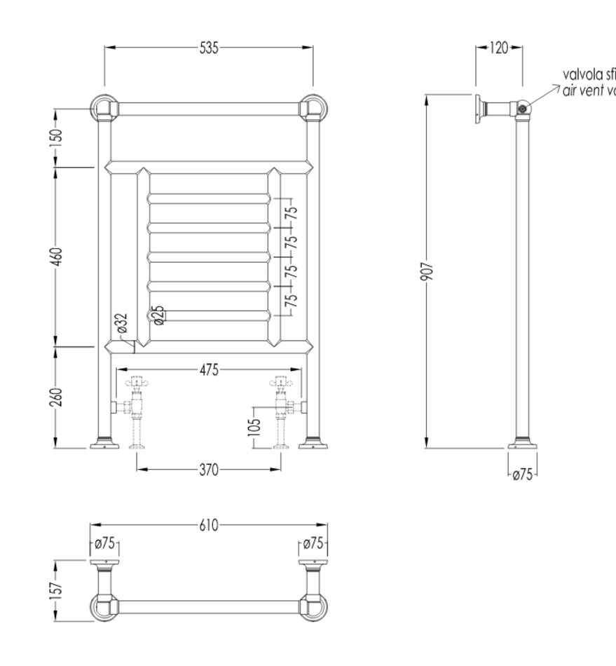Полотенцесушители/радиаторы компании Devon&Devon выполнены из сантехнической латуни, что предусматривает собой возможность установки изделий на систему горячего водоснабжения, исключая негативного воздействия кислорода, находящегося в теплоносителе.
