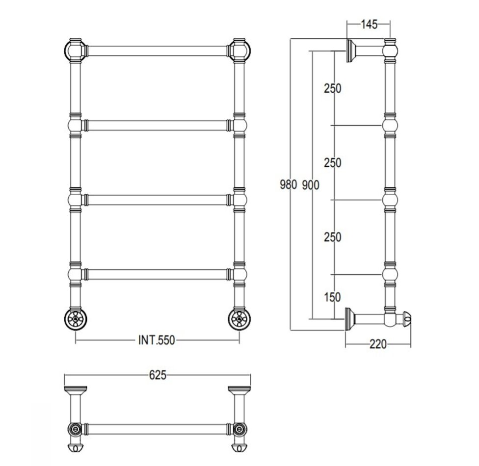 Полотенцесушитель водяной Тругор Браво ПМ 1 50 х 60 x 50 (ЛЦ4), ширина 57.5 см, высота 53.6 см, хром