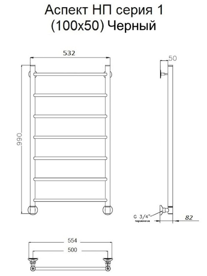 Полотенцесушитель Тругор Аспект НП 1 100*50 (ЛЦ6) черный, ширина 50 см, высота 100 см, хром