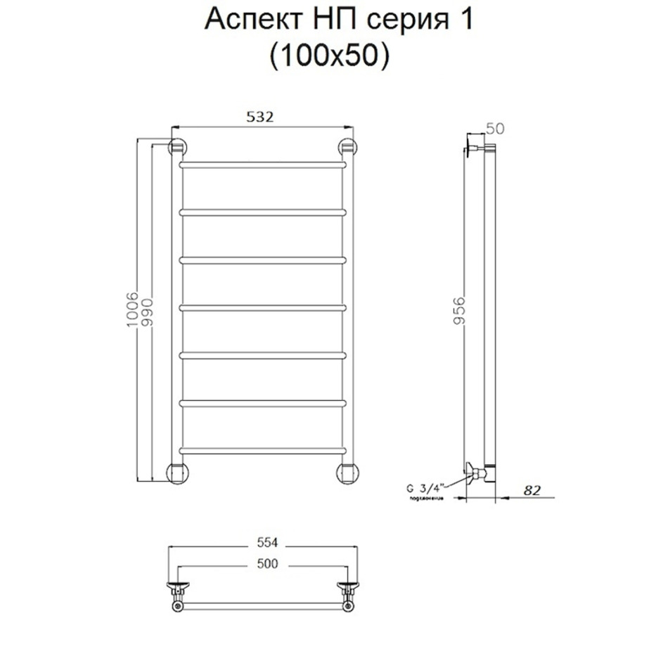 Полотенцесушитель Тругор Аспект НП 1 100*50 (ЛЦ6), ширина 50 см, высота 100 см, хром