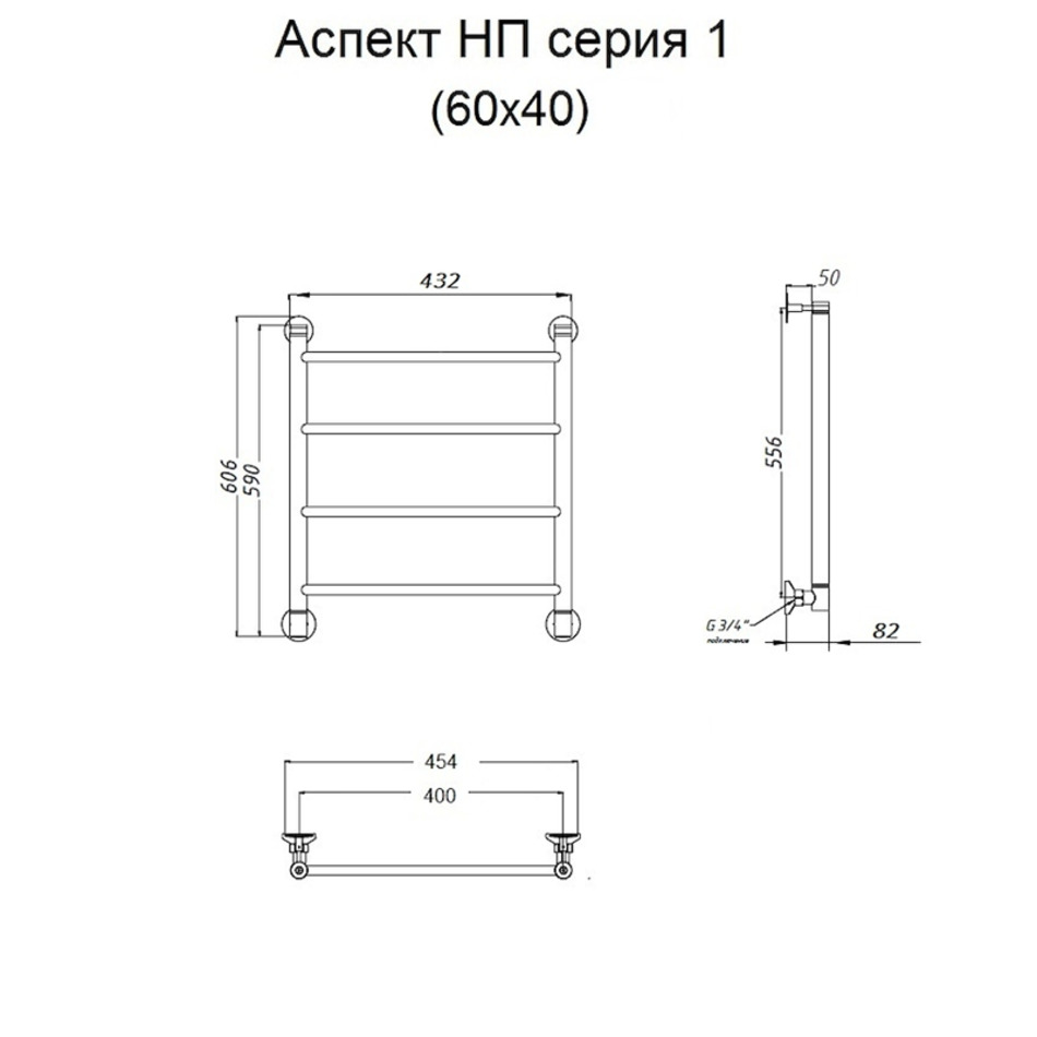 Полотенцесушитель Тругор Аспект НП 1 60*40 (ЛЦ6), ширина 40 см, высота 60 см, хром