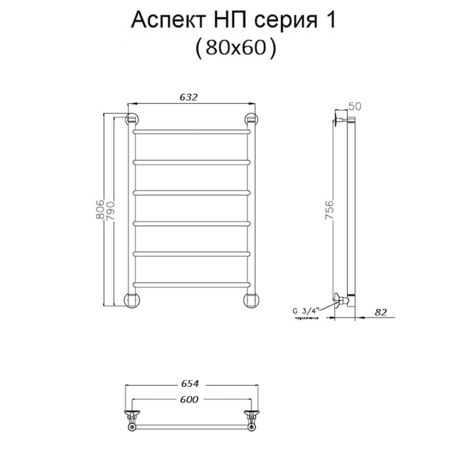 Полотенцесушитель Тругор Аспект НП 1 80*60 (ЛЦ6), ширина 60 см, высота 80 см, хром