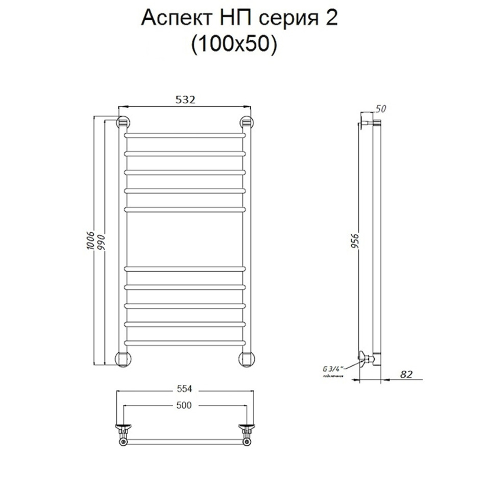 Полотенцесушитель Тругор Аспект НП 2 100*50 (ЛЦ6), ширина 50 см, высота 100 см, хром