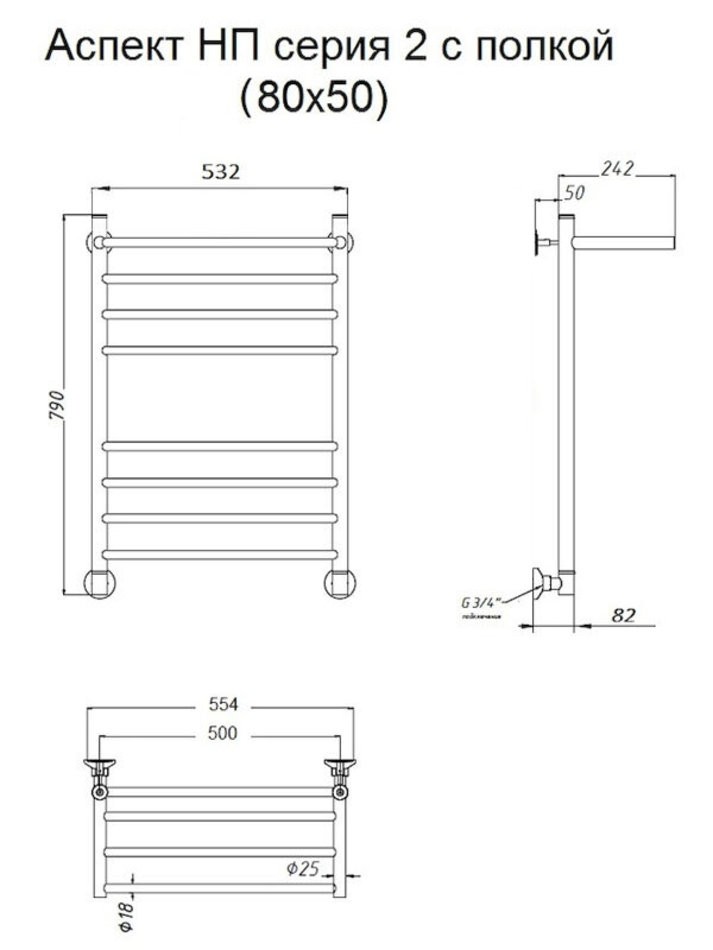 Полотенцесушитель Тругор Аспект НП 2 П 80*50 (ЛЦ6), ширина 50 см, высота 80 см, хром