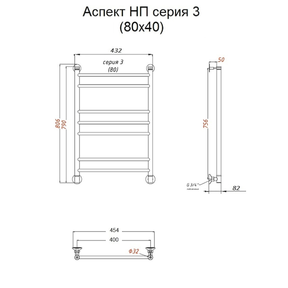 Полотенцесушитель Тругор Аспект НП 3 80*40 (ЛЦ6), ширина 40 см, высота 80 см, хром